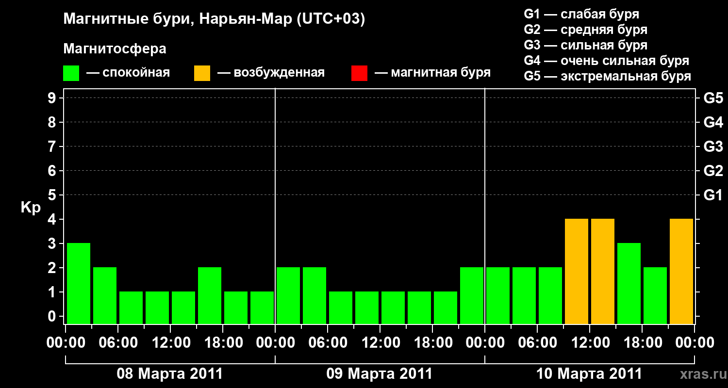 Магнитные бури в Нарьян-Маре 10 марта 2011 года