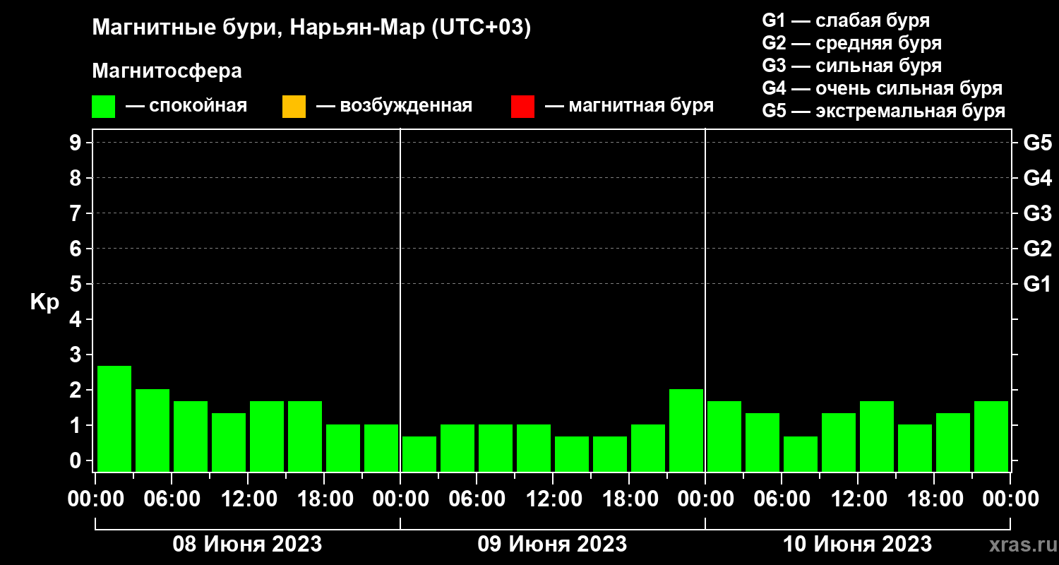 Магнитные бури в Нарьян-Маре 10 июня 2023 года