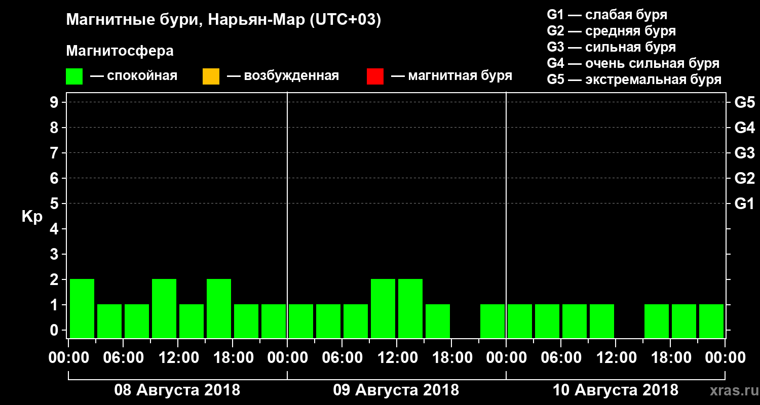 Магнитные бури в Нарьян-Маре 10 августа 2018 года