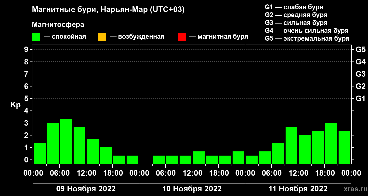 Магнитные бури в Нарьян-Маре 11 ноября 2022 года