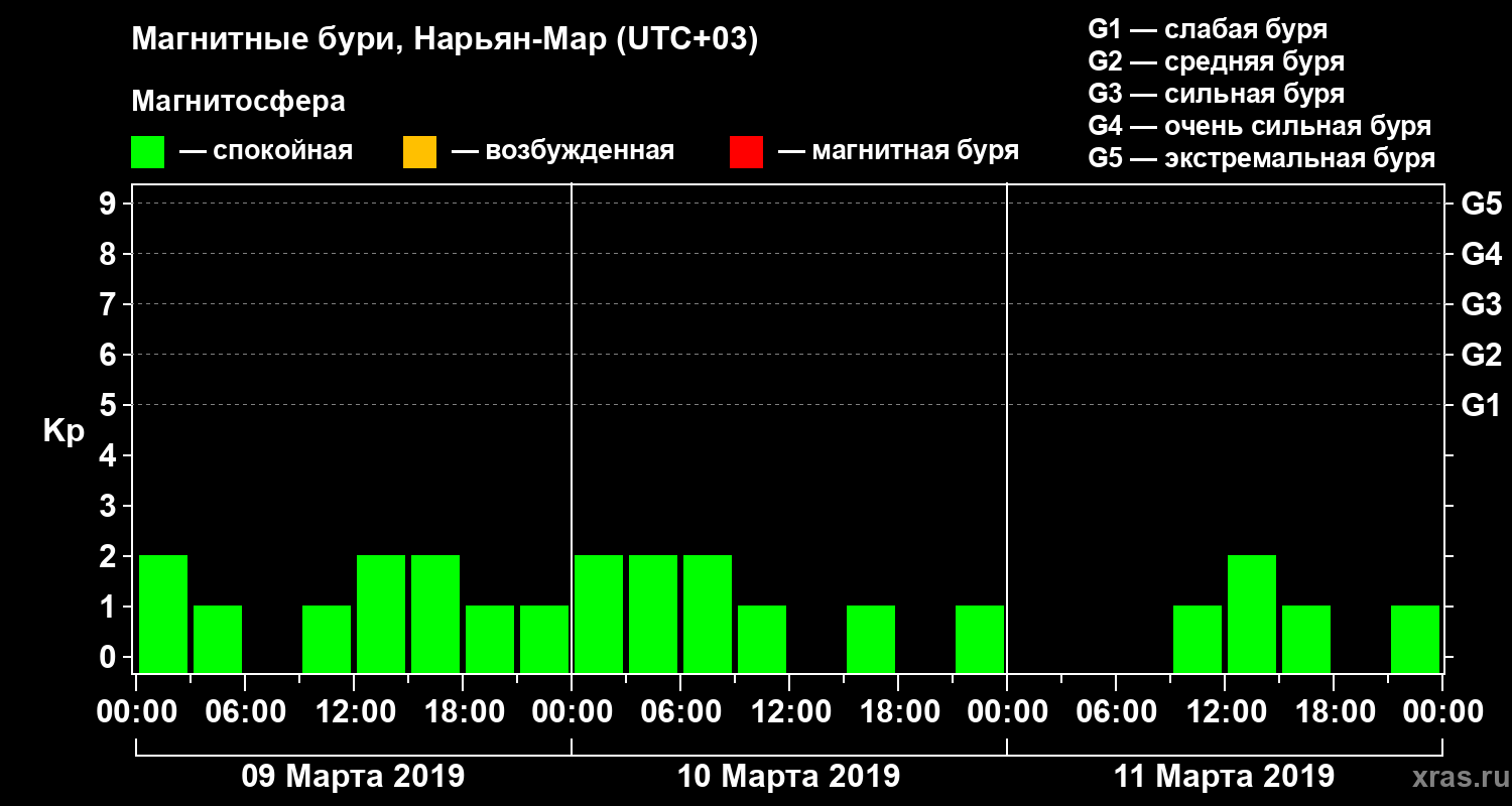 Магнитные бури в Нарьян-Маре 11 марта 2019 года