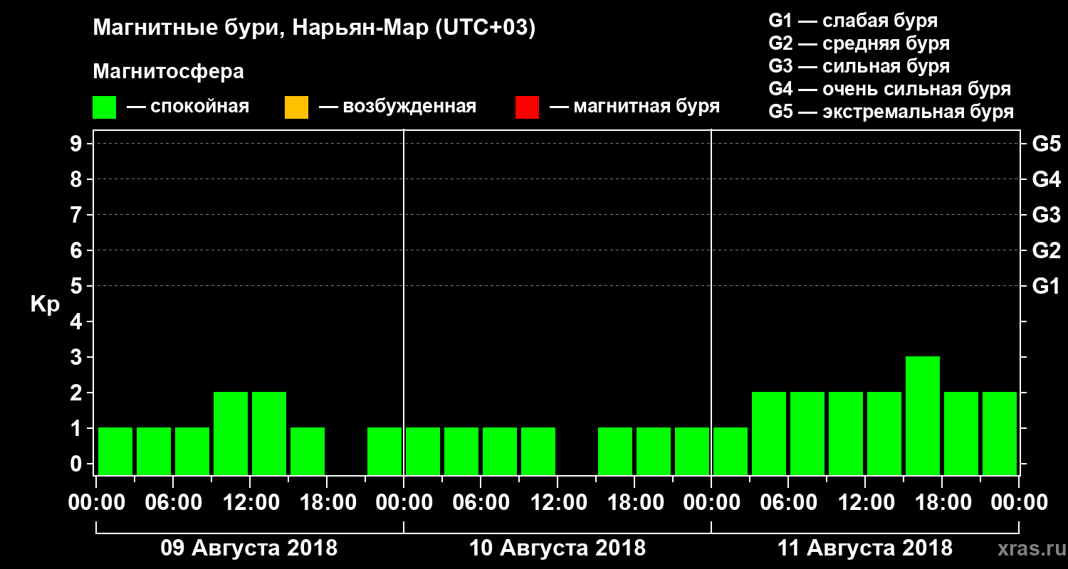 Магнитные бури в Нарьян-Маре 11 августа 2018 года