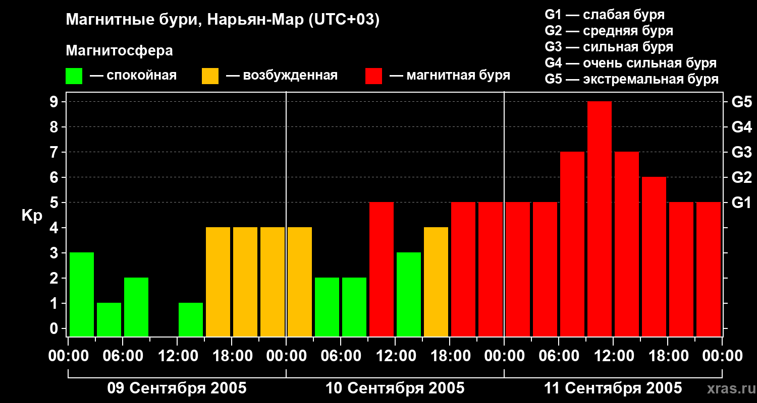 Магнитные бури в Нарьян-Маре — 11 сентября 2005 года