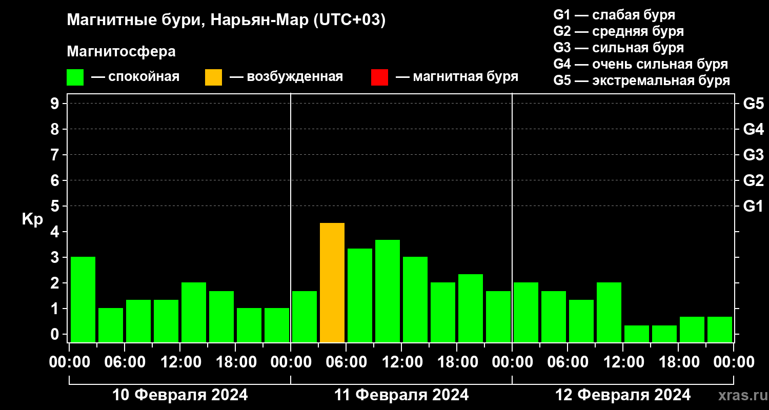 Магнитные бури в Нарьян-Маре 12 февраля 2024 года