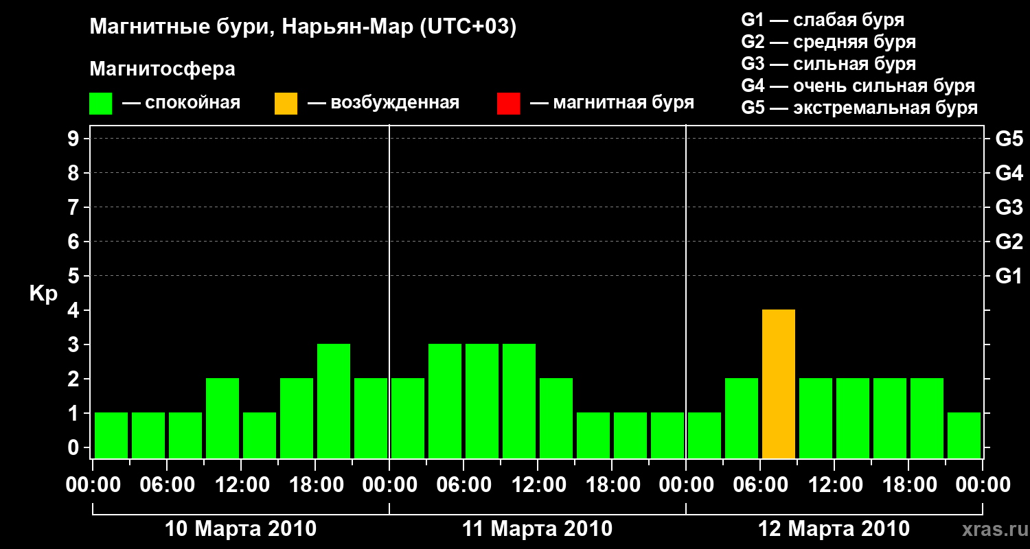 Магнитные бури в Нарьян-Маре 12 марта 2010 года