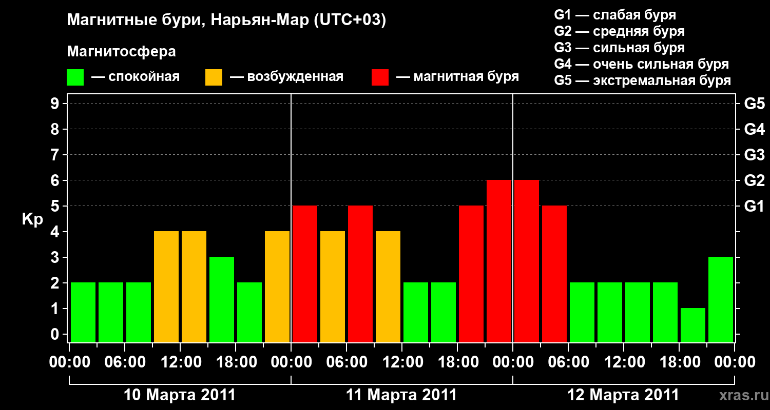 Магнитные бури в Нарьян-Маре 12 марта 2011 года