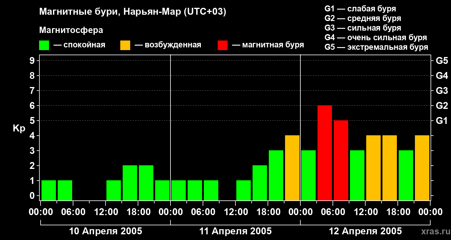 Магнитные бури в Нарьян-Маре 12 апреля 2005 года
