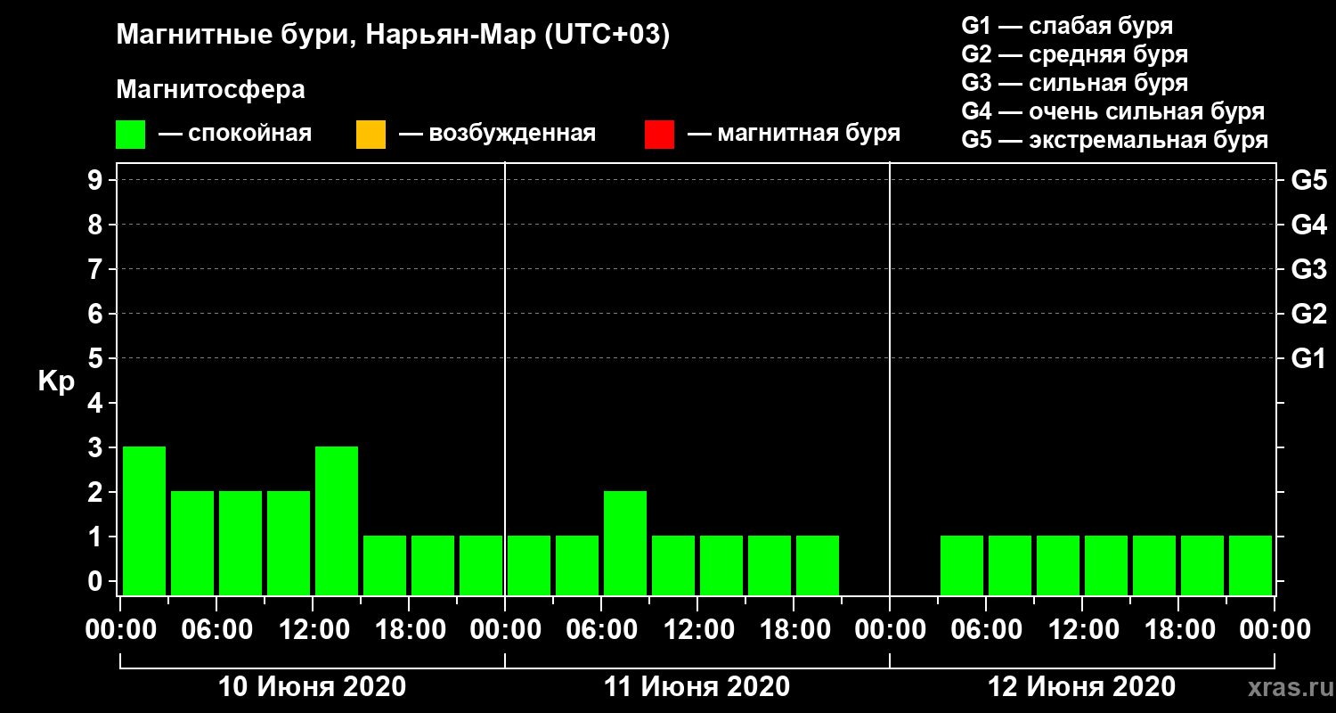 Магнитные бури в Нарьян-Маре 12 июня 2020 года