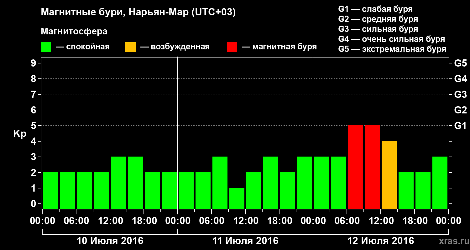 Магнитные бури в Нарьян-Маре 12 июля 2016 года