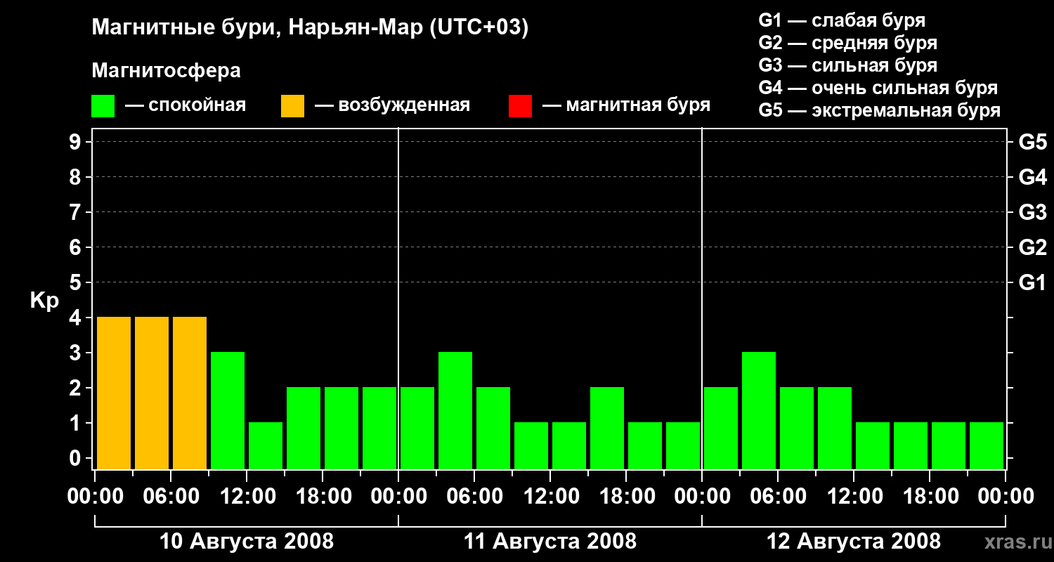 Магнитные бури в Нарьян-Маре 12 августа 2008 года
