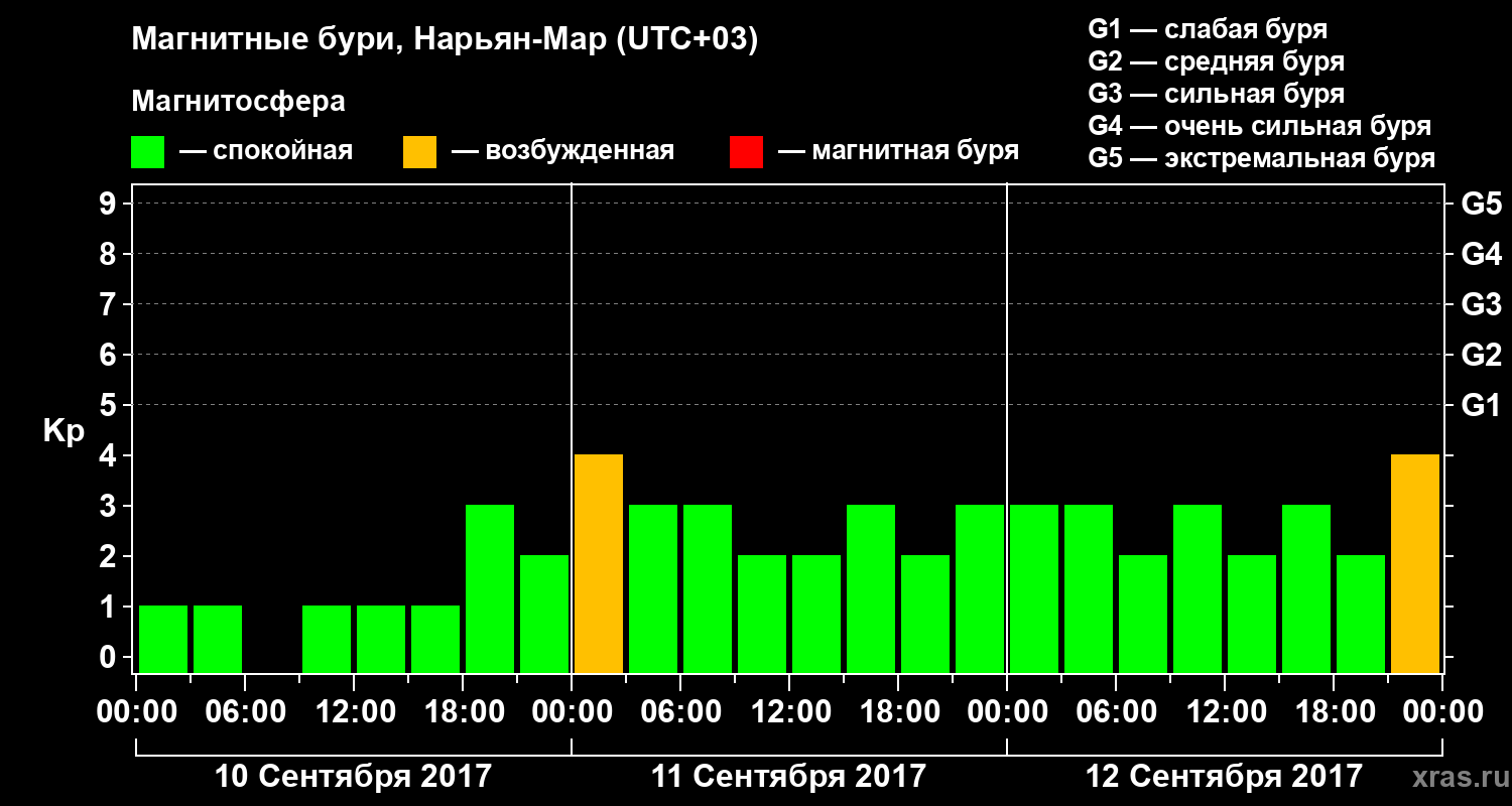 Магнитные бури в Нарьян-Маре 12 сентября 2017 года