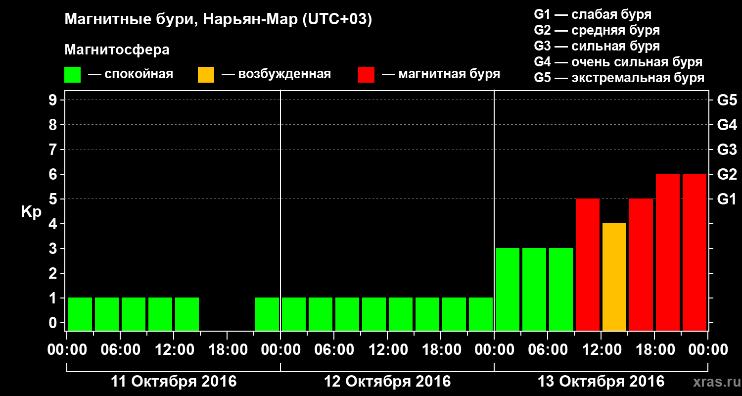 Магнитные бури в Нарьян-Маре 13 октября 2016 года