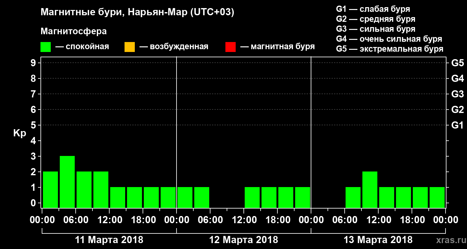 Магнитные бури в Нарьян-Маре 13 марта 2018 года