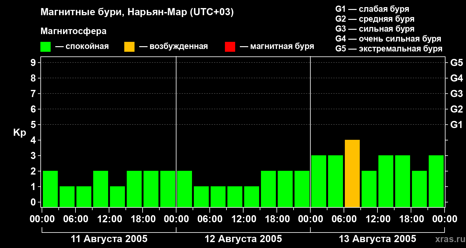 Магнитные бури в Нарьян-Маре — 13 августа 2005 года