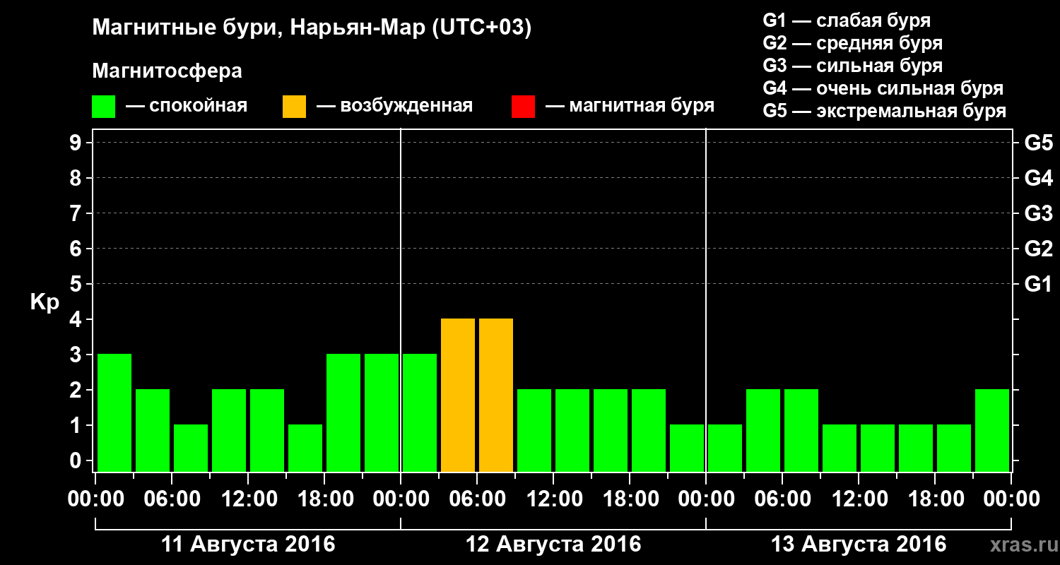 Магнитные бури в Нарьян-Маре 13 августа 2016 года