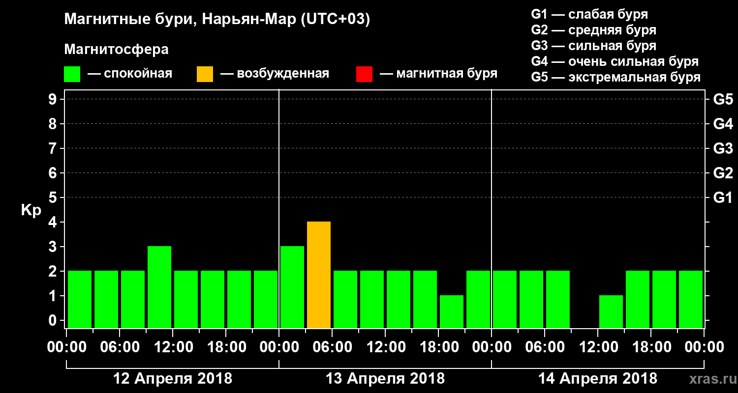 Магнитные бури в Нарьян-Маре 14 апреля 2018 года