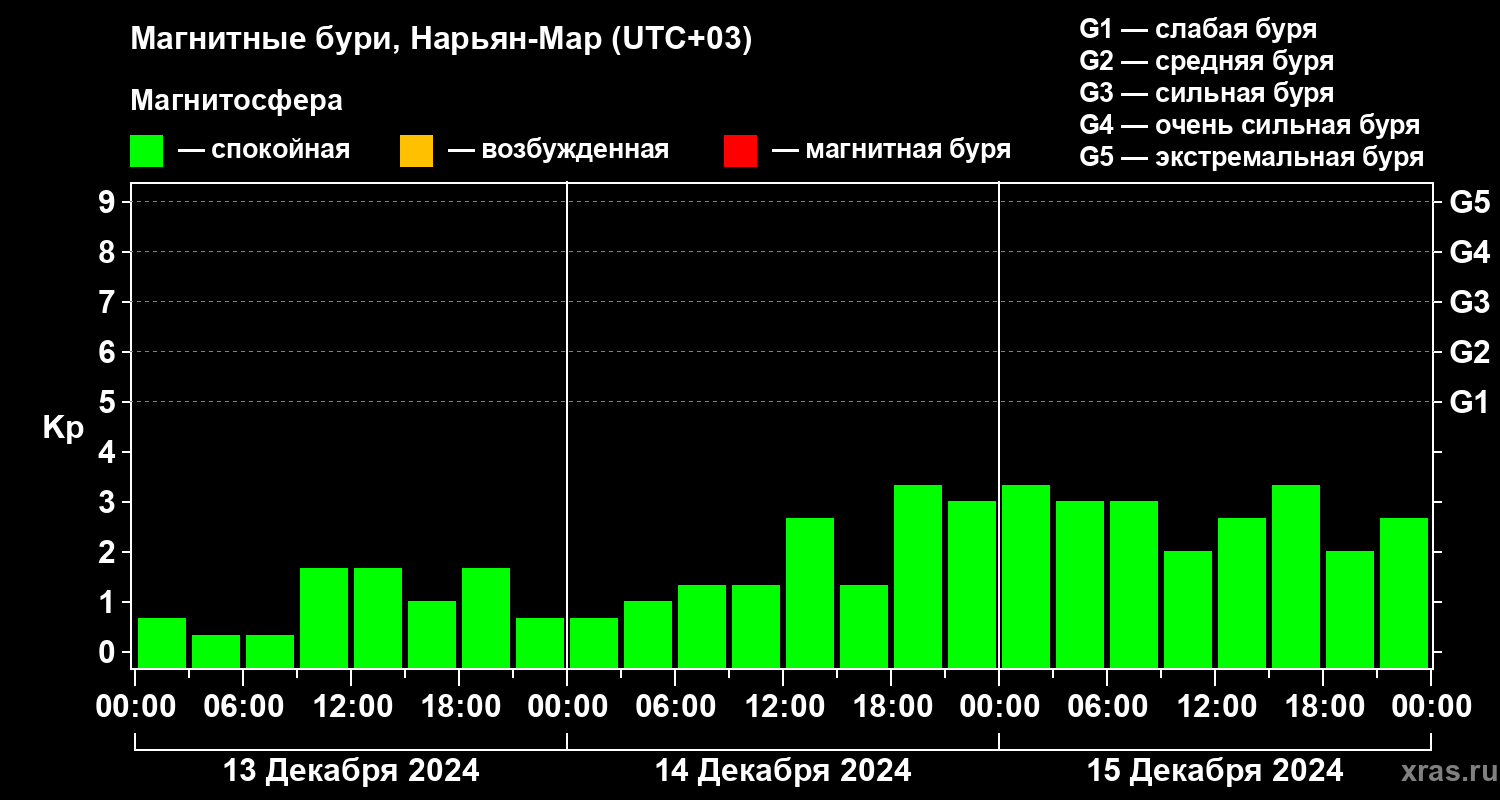 Магнитные бури в Нарьян-Маре — 15 декабря 2024 года