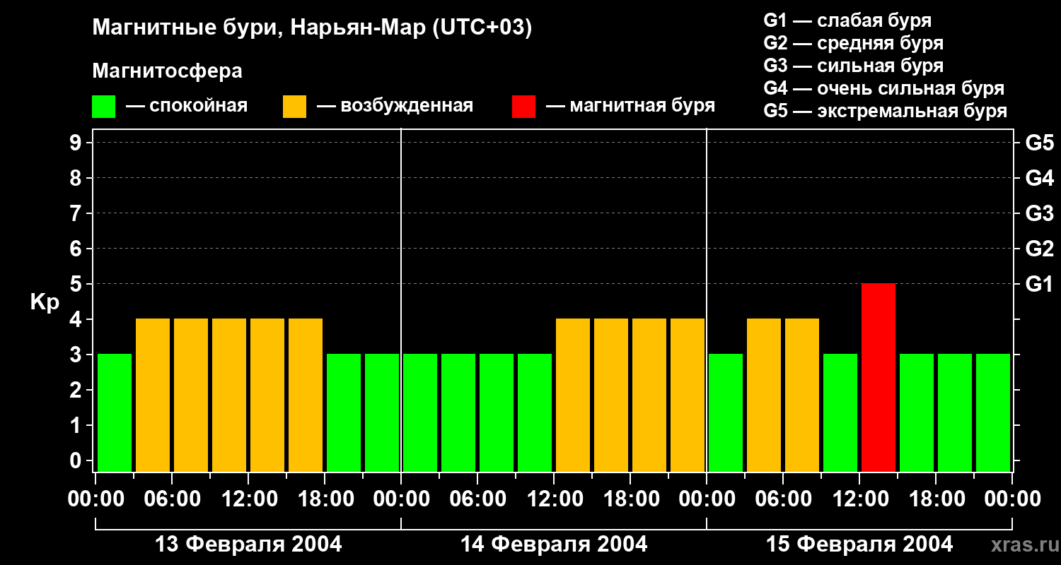 Магнитные бури в Нарьян-Маре — 15 февраля 2004 года