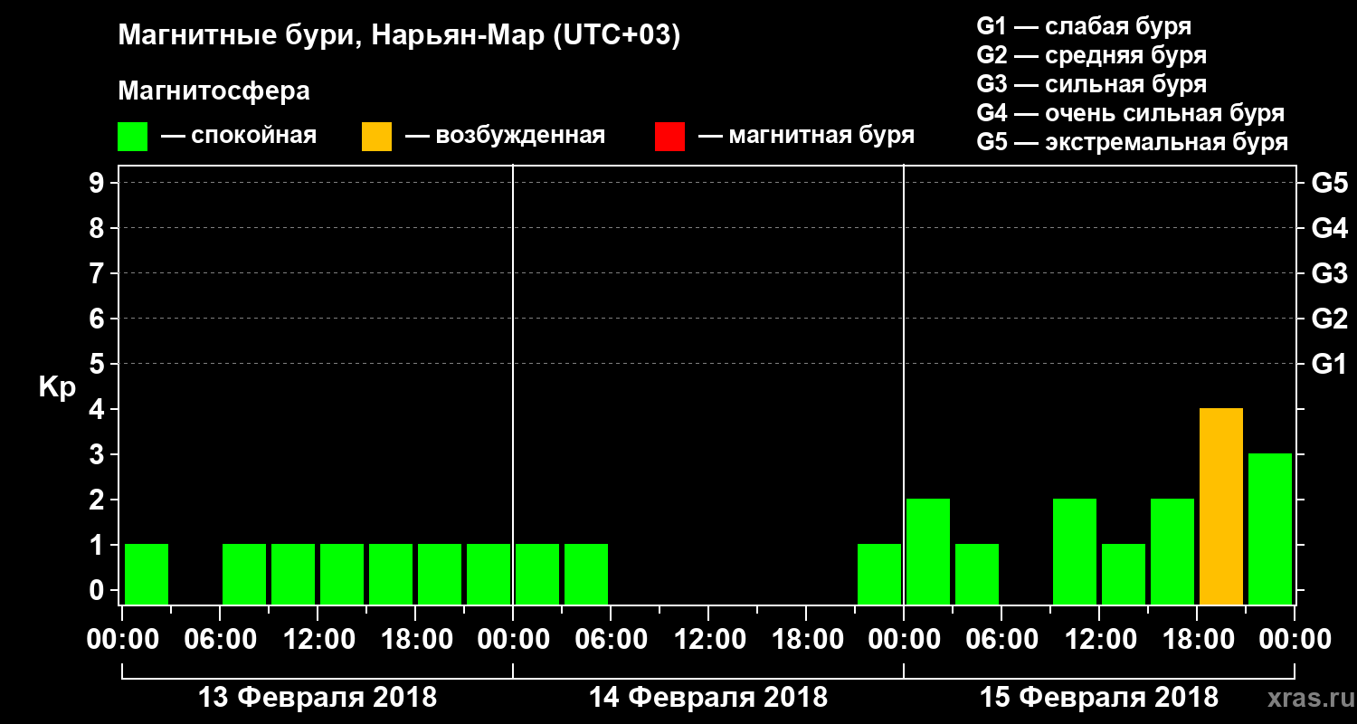 Магнитные бури в Нарьян-Маре 15 февраля 2018 года