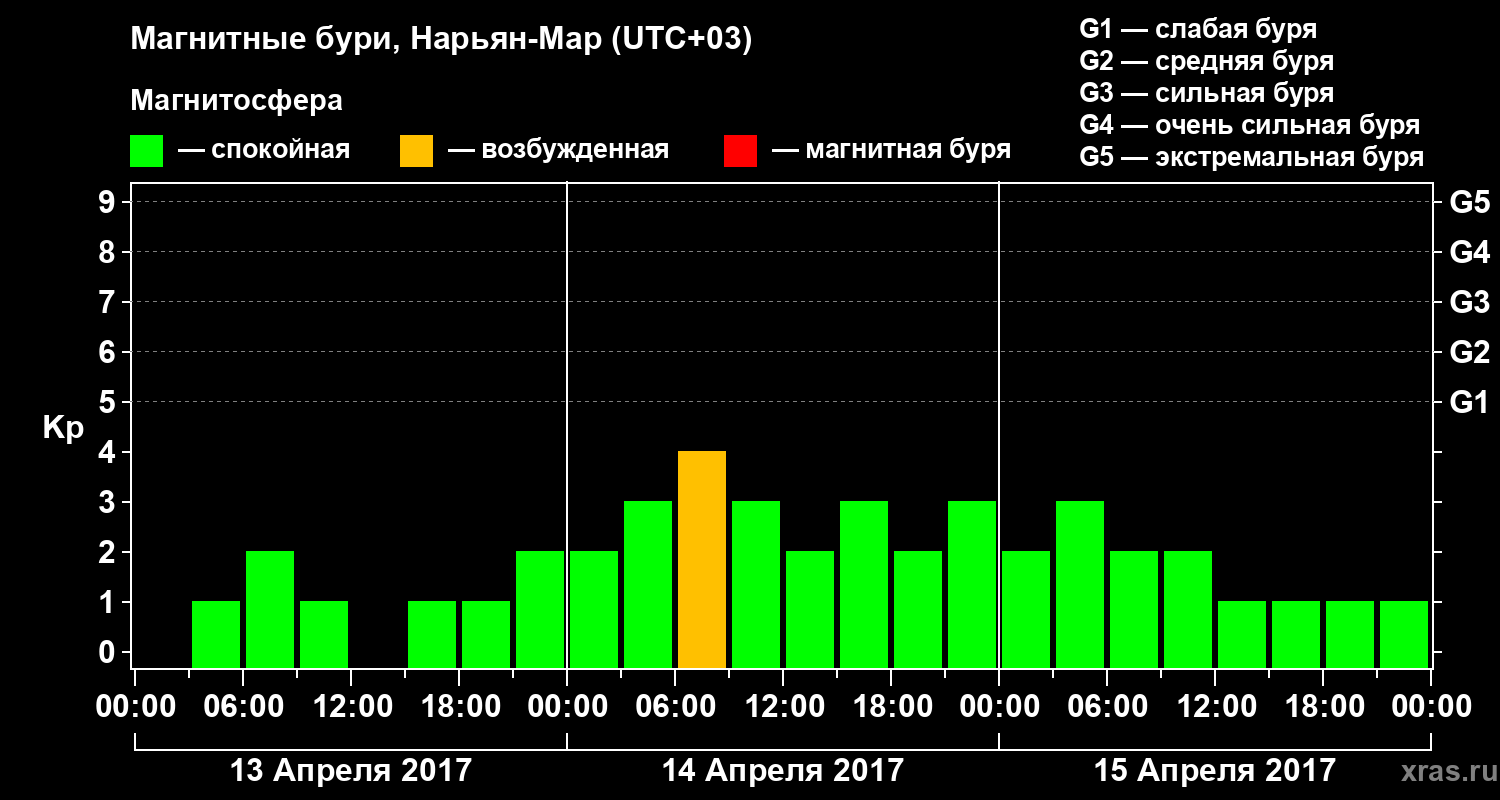 Магнитные бури в Нарьян-Маре 15 апреля 2017 года