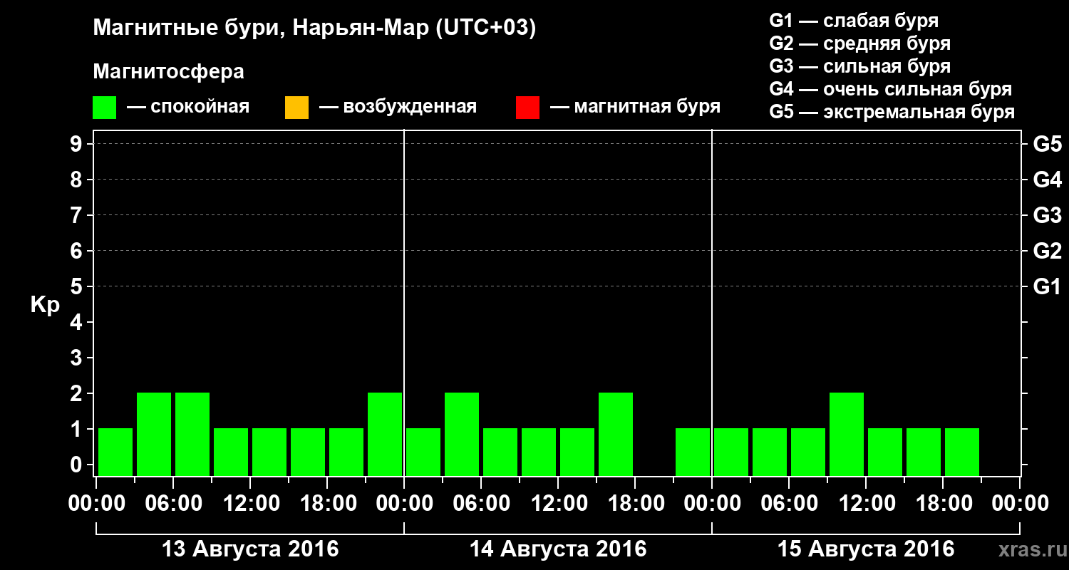 Магнитные бури в Нарьян-Маре 15 августа 2016 года