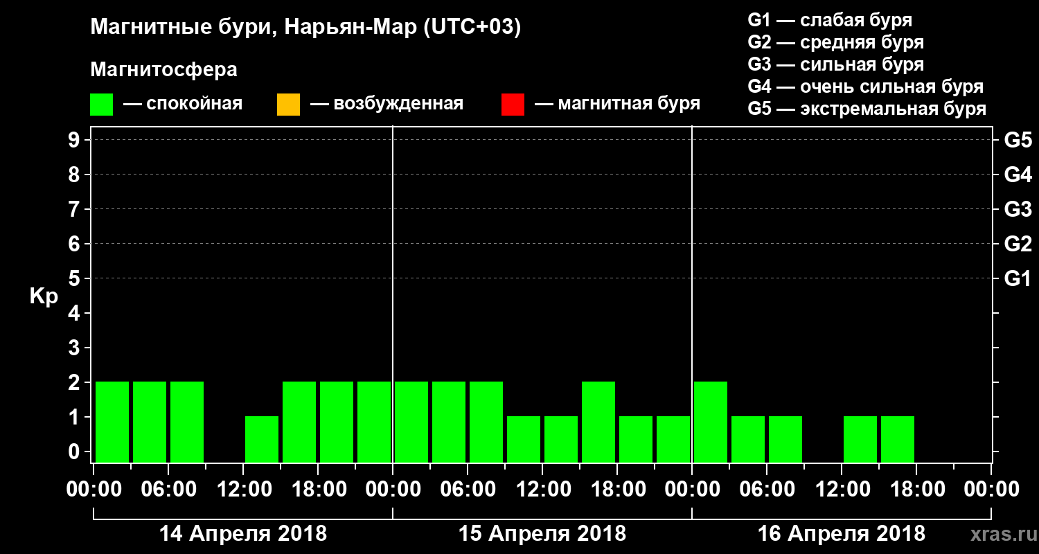 Магнитные бури в Нарьян-Маре 16 апреля 2018 года