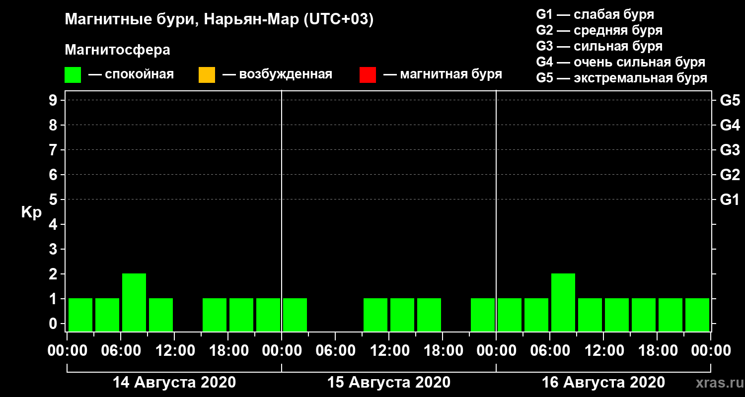 Магнитные бури в Нарьян-Маре 16 августа 2020 года