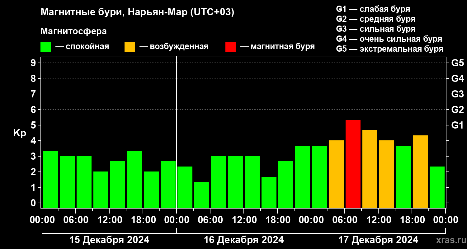 Магнитные бури в Нарьян-Маре — 17 декабря 2024 года