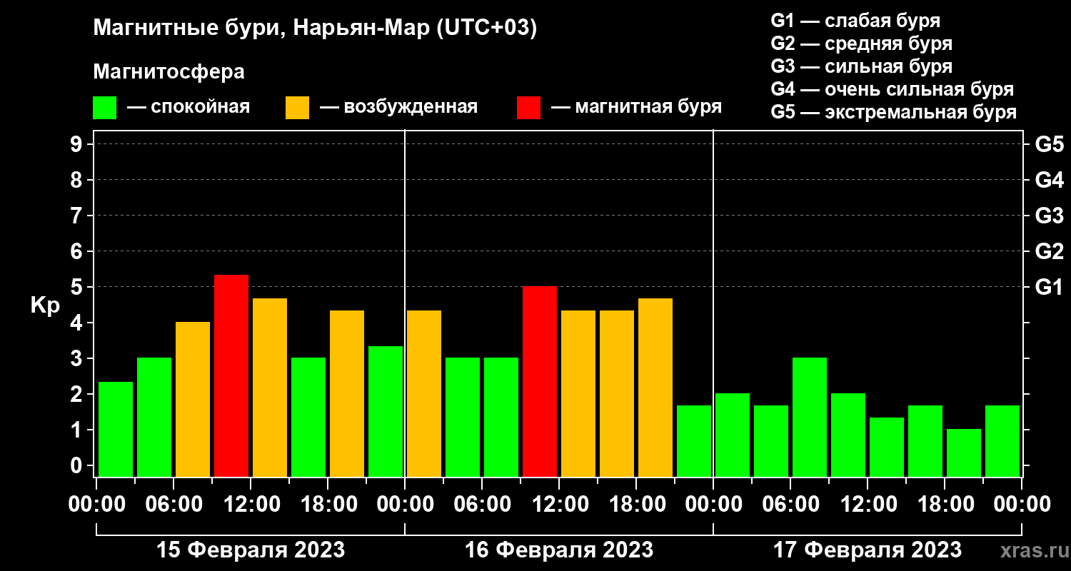 Магнитные бури в Нарьян-Маре — 17 февраля 2023 года