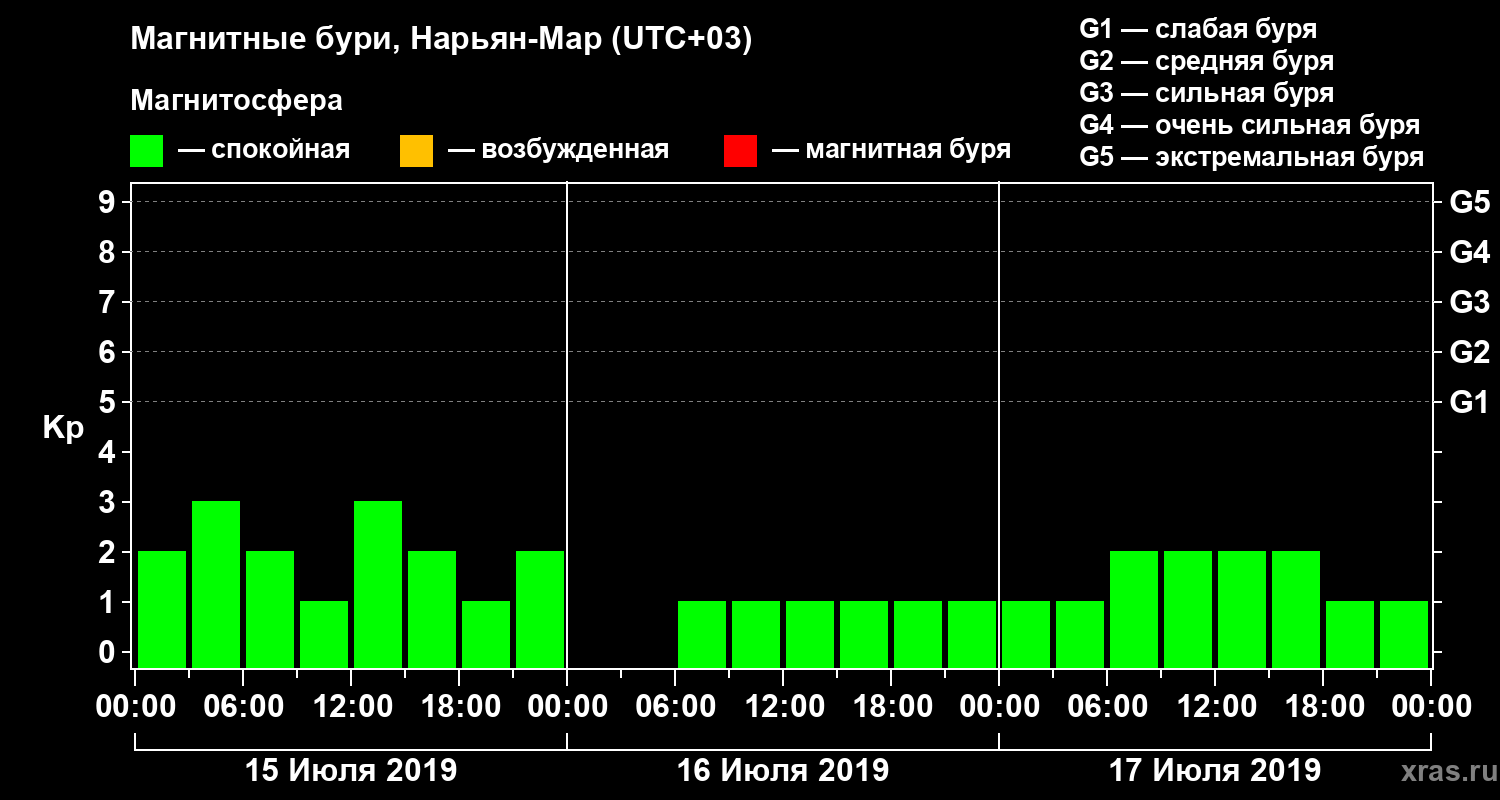 Магнитные бури в Нарьян-Маре 17 июля 2019 года