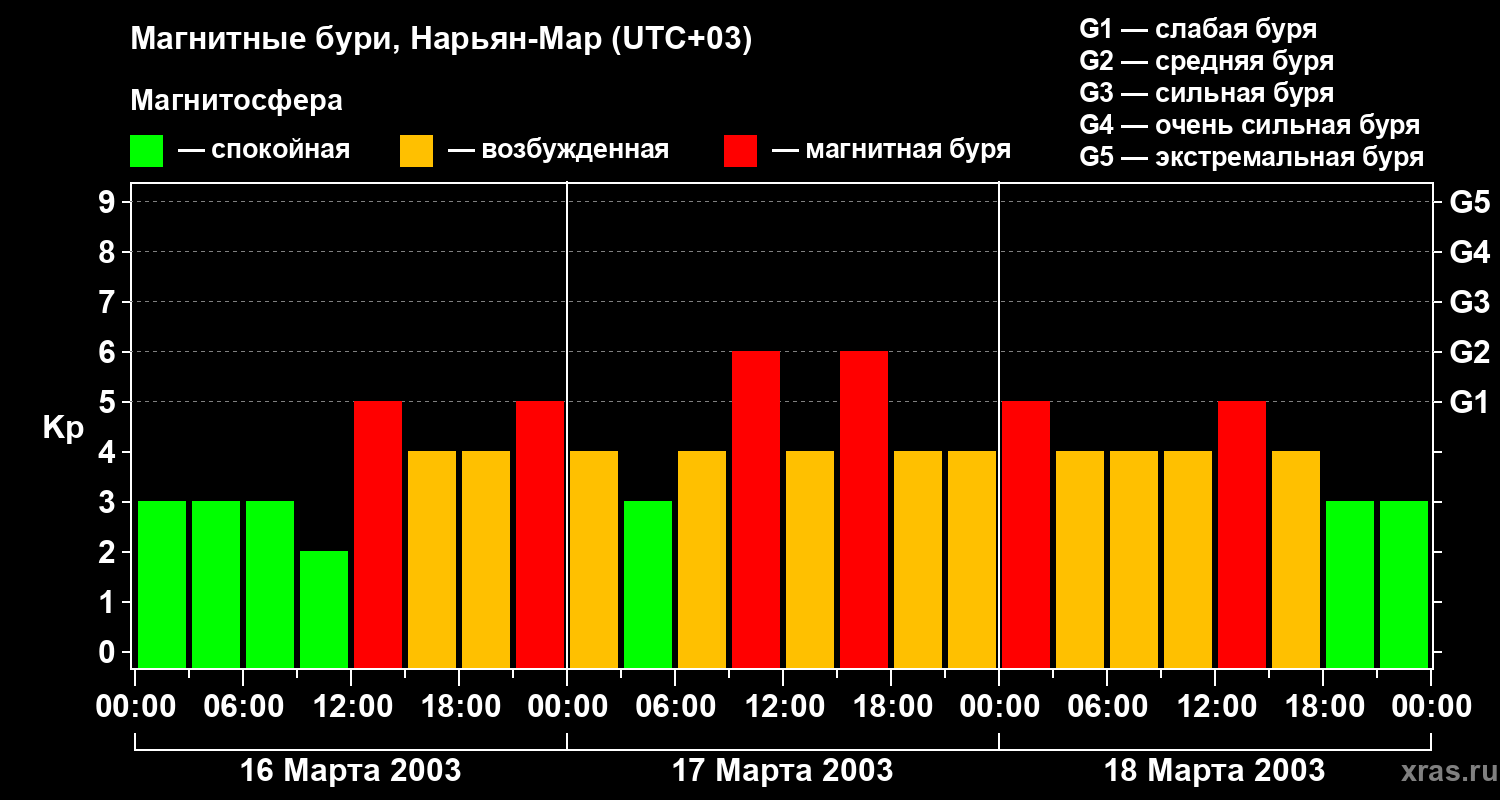Магнитные бури в Нарьян-Маре — 18 марта 2003 года