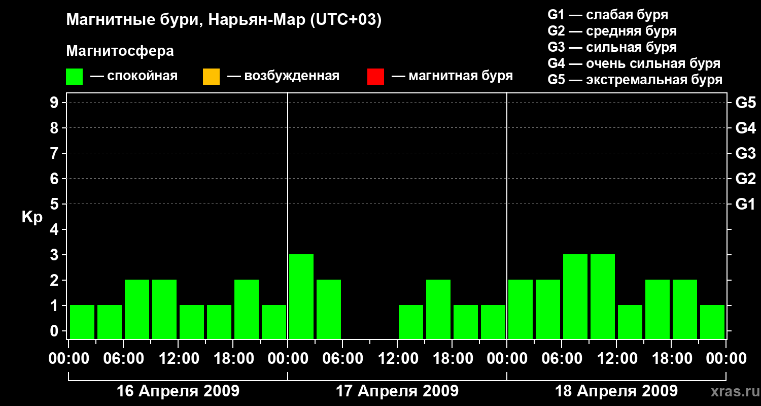Магнитные бури в Нарьян-Маре 18 апреля 2009 года