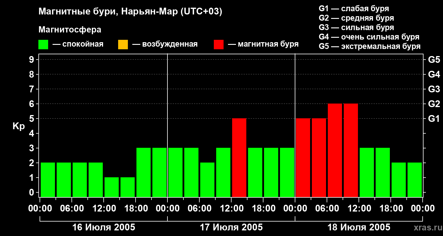 Магнитные бури в Нарьян-Маре 18 июля 2005 года