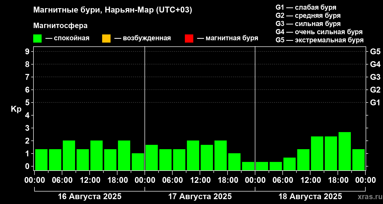 Магнитные бури в Нарьян-Маре 18 августа 2025 года
