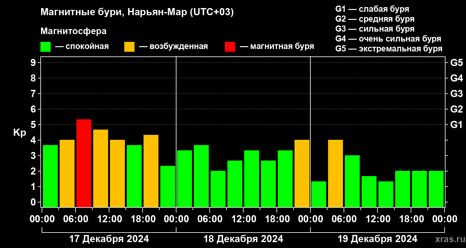 Магнитные бури в Нарьян-Маре — 19 декабря 2024 года
