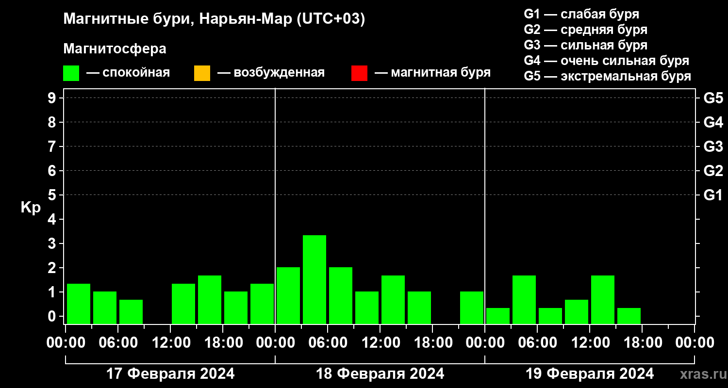 Магнитные бури в Нарьян-Маре — 19 февраля 2024 года