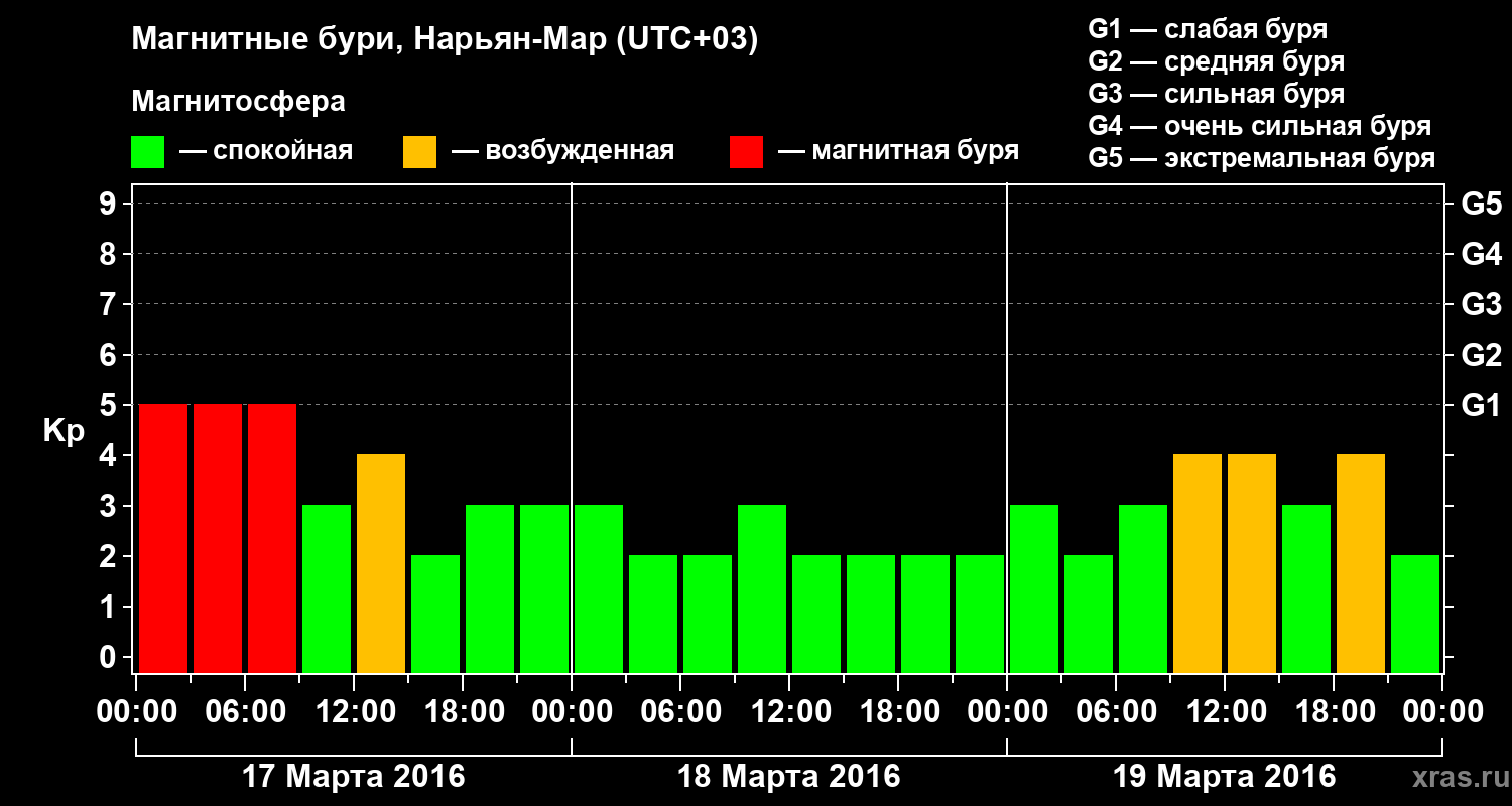 Магнитные бури в Нарьян-Маре 19 марта 2016 года