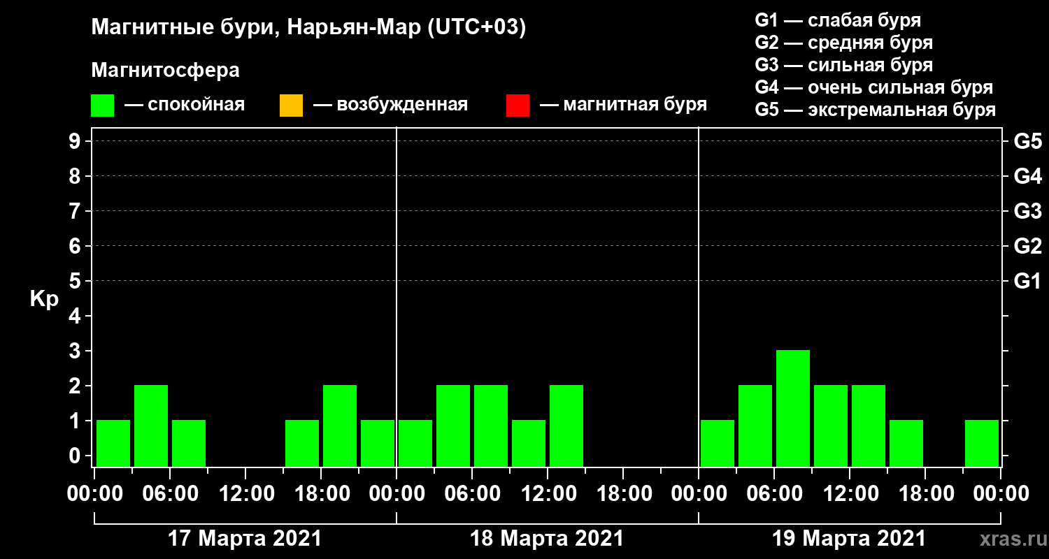 Магнитные бури в Нарьян-Маре — 19 марта 2021 года