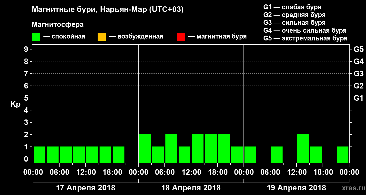 Магнитные бури в Нарьян-Маре 19 апреля 2018 года