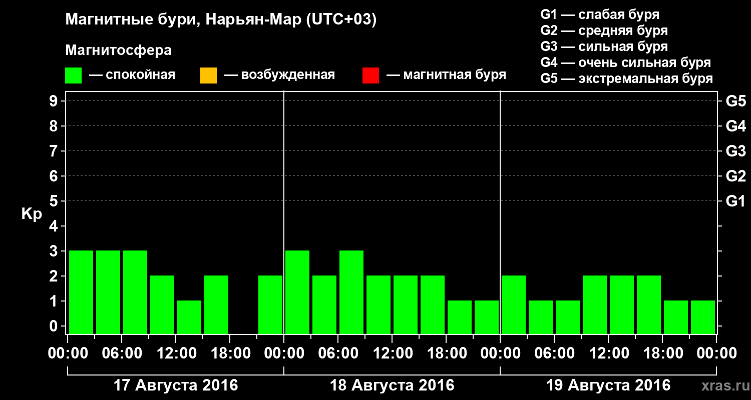 Магнитные бури в Нарьян-Маре 19 августа 2016 года