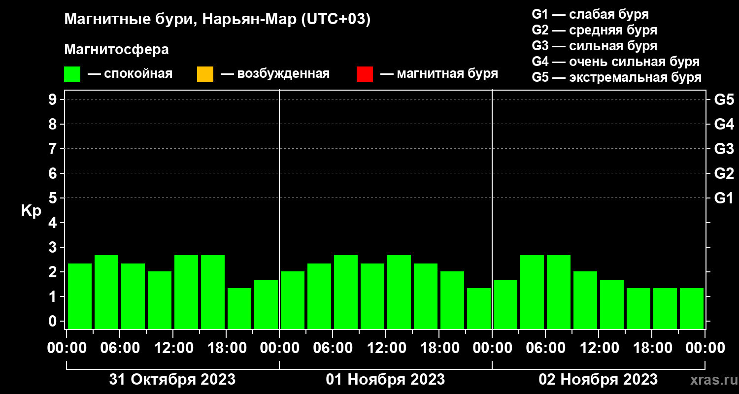 Магнитные бури в Нарьян-Маре 2 ноября 2023 года