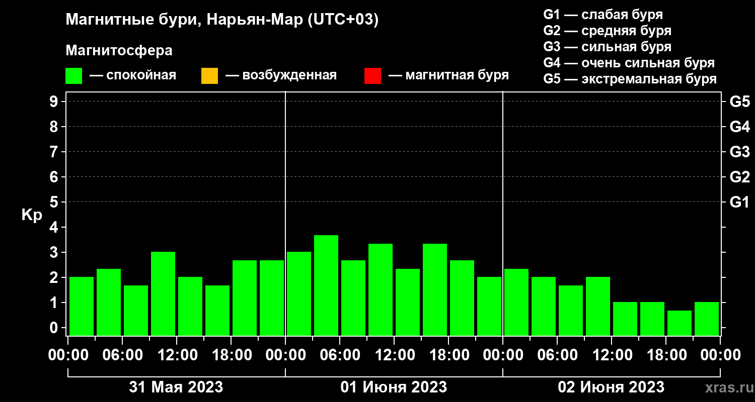 Магнитные бури в Нарьян-Маре 2 июня 2023 года