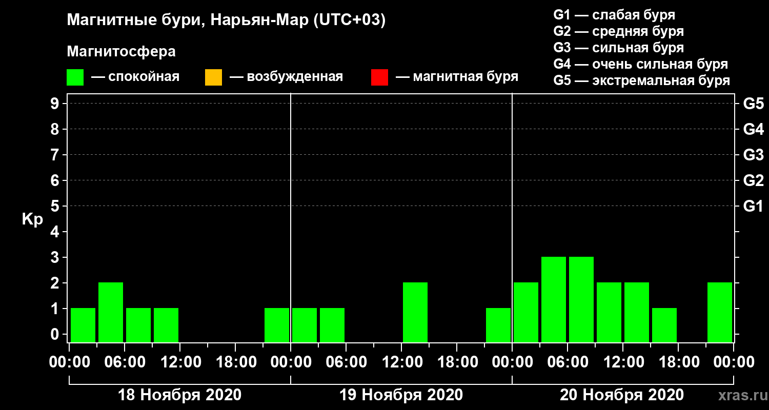 Магнитные бури в Нарьян-Маре — 20 ноября 2020 года