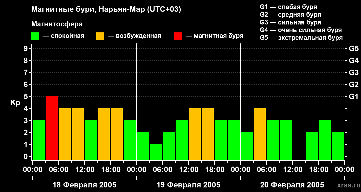 Магнитные бури в Нарьян-Маре — 20 февраля 2005 года