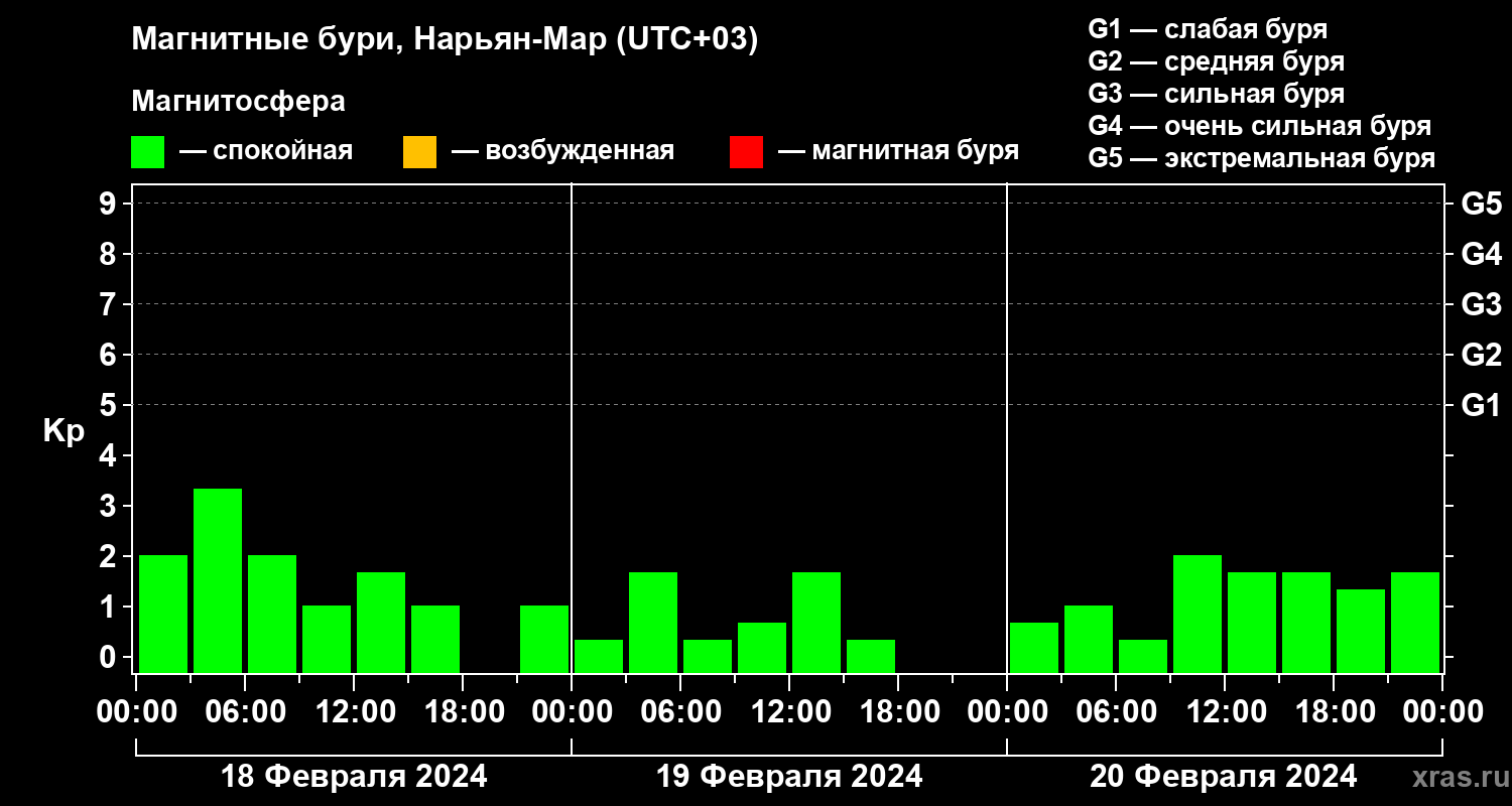 Магнитные бури в Нарьян-Маре — 20 февраля 2024 года