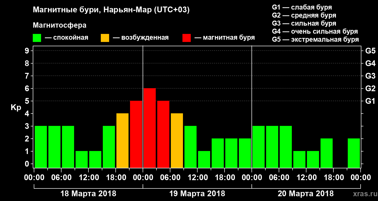 Магнитные бури в Нарьян-Маре 20 марта 2018 года