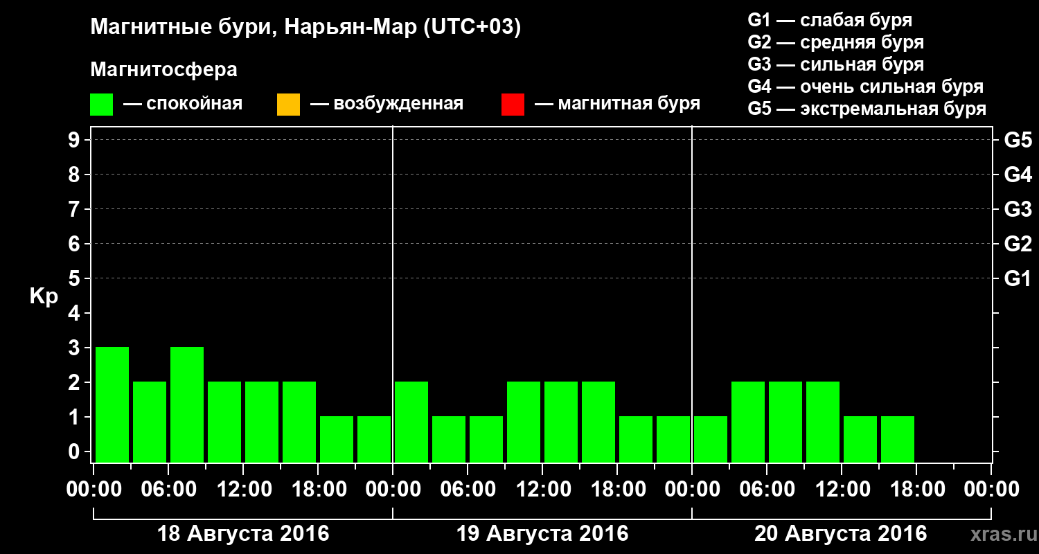 Магнитные бури в Нарьян-Маре 20 августа 2016 года