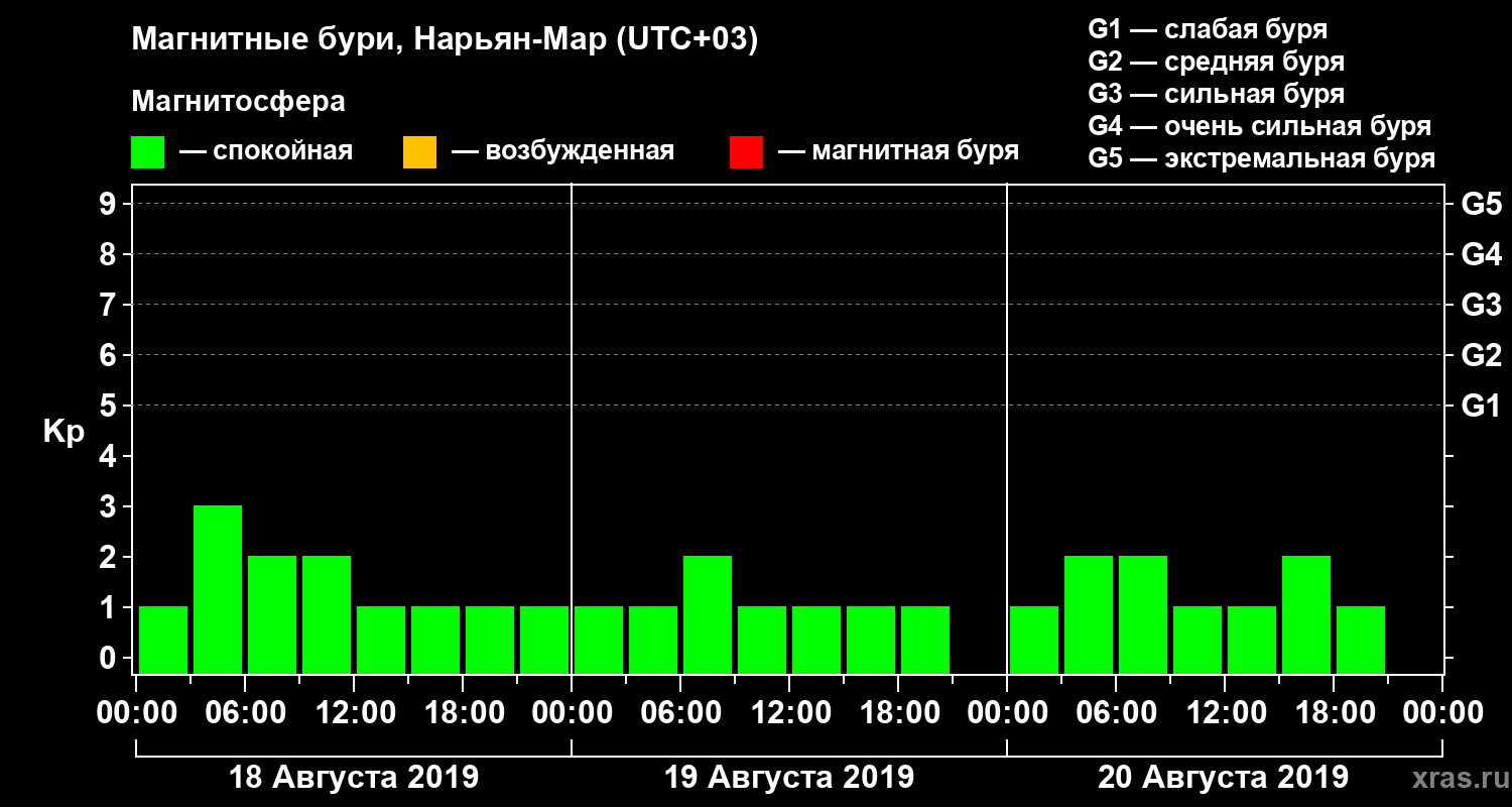 Магнитные бури в Нарьян-Маре 20 августа 2019 года