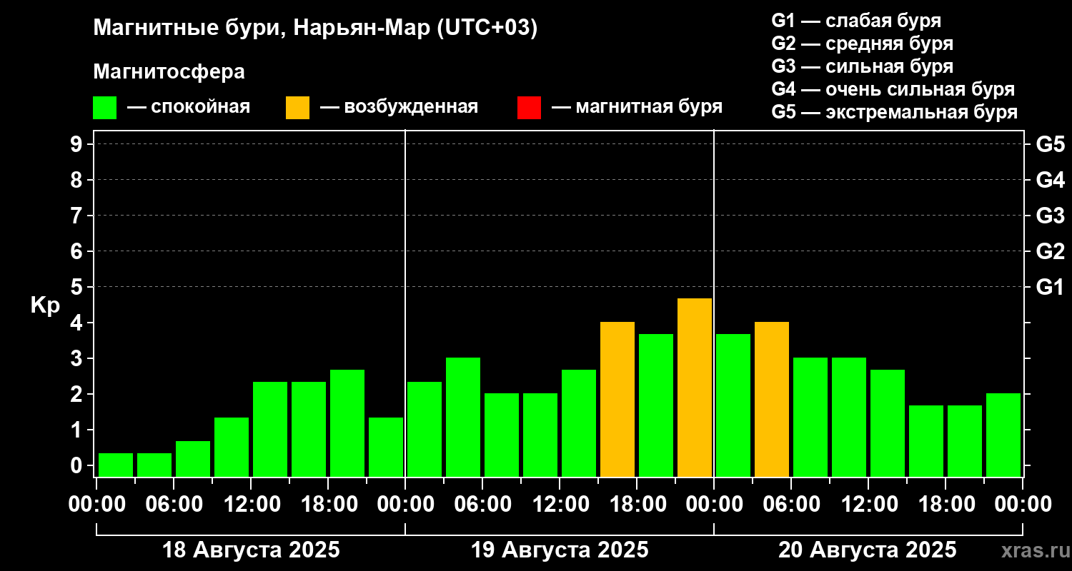 Магнитные бури в Нарьян-Маре 20 августа 2025 года