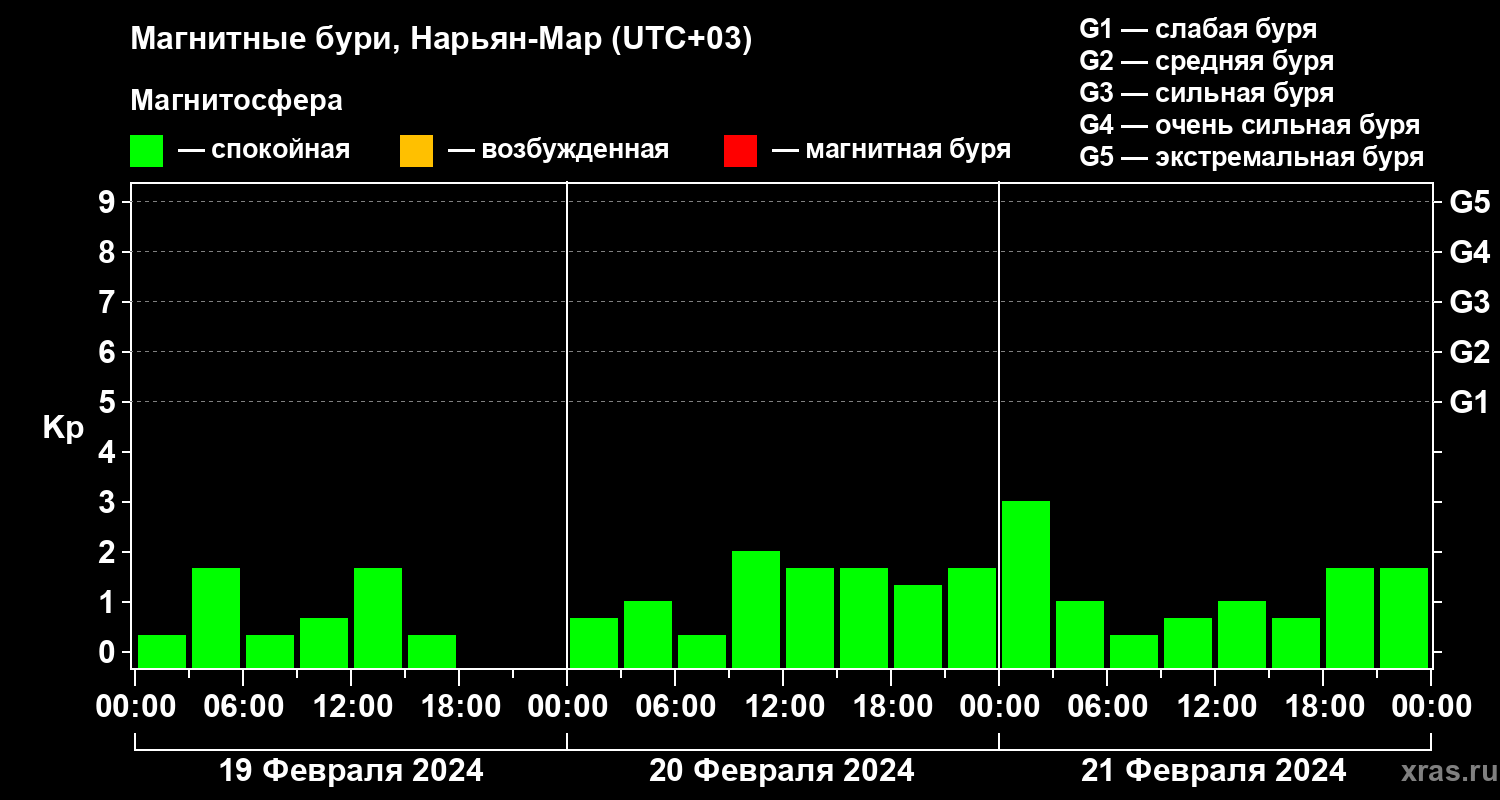 Магнитные бури в Нарьян-Маре — 21 февраля 2024 года